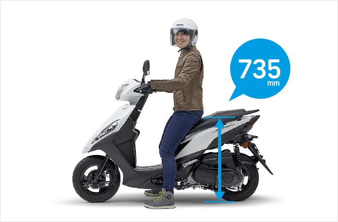 50ccのビーノがシート高が720㎜ですのでほとんど変わらない感覚で乗っていただけるんじゃないでしょうか?