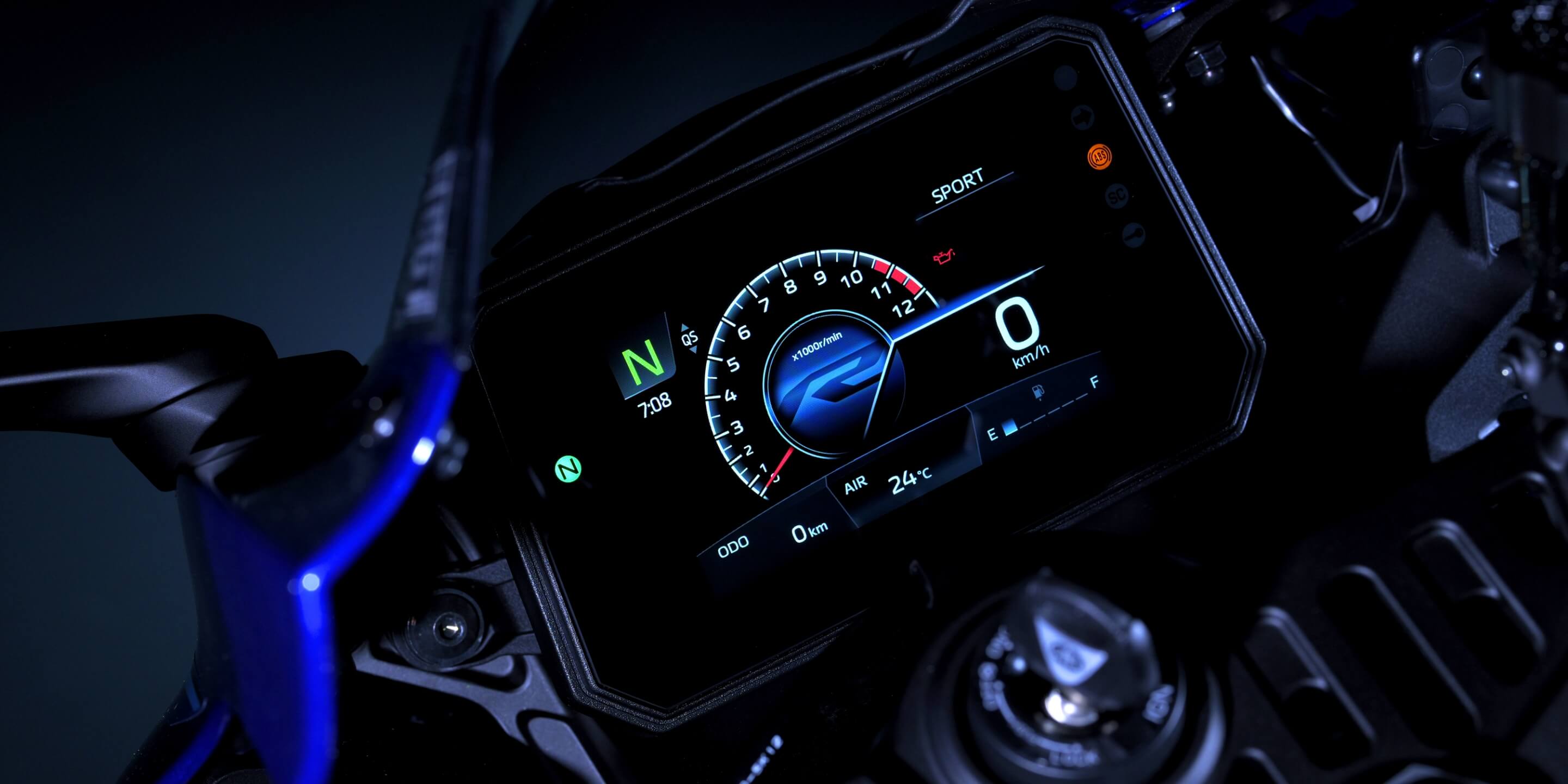 バイクライフが充実するY-Connect対応の5インチフルカラーTFTディスプレイは4つのテーマとラップタイムをメインに置いたTrackモードが搭載。